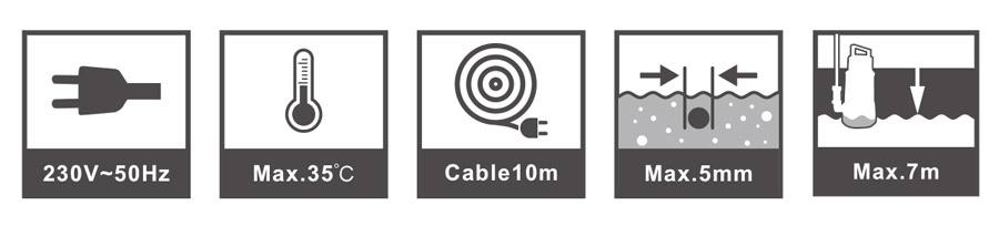 Max.pump height | 6.0m | 8.0m | 8.5m | 8.5m | 9.5m |