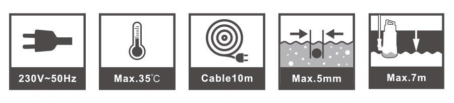 Max.pump height | 6.5m | 7.5m | 8.5m | 9m |