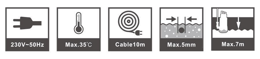 Lowest pump sucking level | 5mm | 5mm | 5mm | 5mm | 5mm |