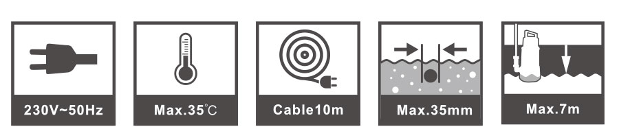 Max.pump height | 5m | 7m | 8m | 8.5m | 10m |