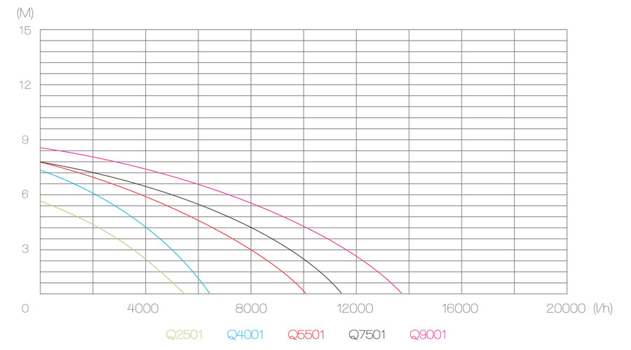 Max.pump rate | 6000l/h | 7000l/h | 11000l/h | 12500l/h | 15000l/h |